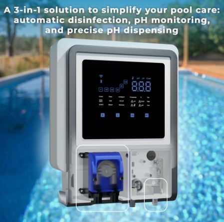 - Regulación de pH automática incluida: ajusta el pH de tu piscina automáticamente con este clorador salino, asegurando el equilibrio ideal del agua y evitando el mantenimiento manual. Ideal para quienes buscan comodidad y un agua agradable al contacto.
